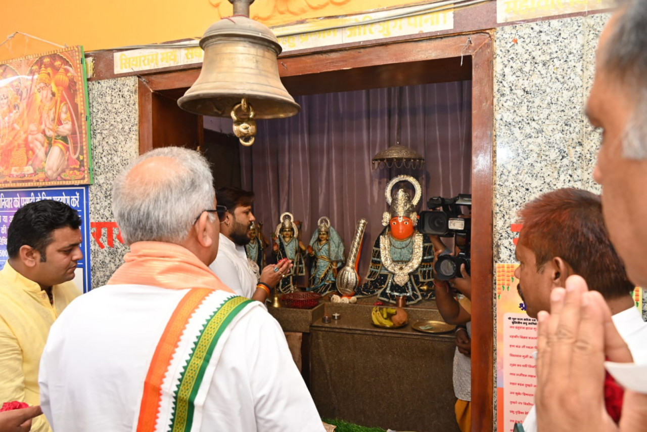 Chief Minister Mr. Bhupesh Baghel visited Ram Janaki Temple and Manokamna Siddha Hanuman Temple located at Mandi Marg in Raipur city during his meet-meet program today. On this occasion, he sought blessings from Shri Ram Janaki and Shri Hanuman for the progress and prosperity of the state.