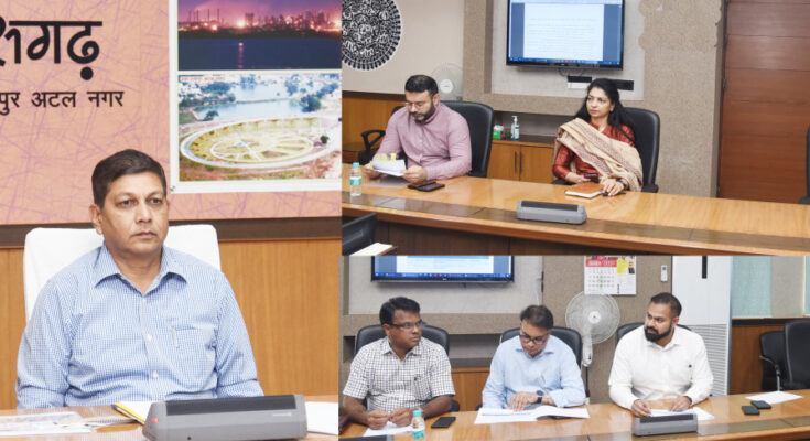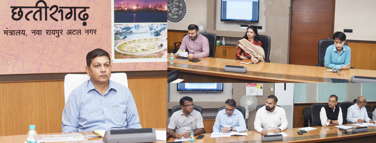 A meeting of the Empowered Group of Secretaries under the Pradhan Mantri Gati Shakti Yojana was held at Mantralaya (Mahanadi Bhawan) under the chairmanship of Chief Secretary Mr. Amitabh Jain. In the meeting, there was a detailed discussion on various issues to be included in the State Master Plan of Chhattisgarh under the scheme. The progress of geo-referencing of land records was reviewed in the meeting. In order to bring progress in the geo-referencing work of land records, the officers of the Revenue, Information and Technology and Finance Departments have been directed to prepare a time-bound action plan and complete the work soon. Similarly, the progress of Data Center, Approaching Road, Food Park, Industrial Area and Warehouse was reviewed under Financial Assistance Part-2 under Pradhan Mantri Gati Shakti Yojana. In the meeting, officials of Women and Child Development Department, Higher Education, Technical Education, Agriculture, Horticulture, Energy, Sports and Youth Welfare and Commerce and Industry and other departments informed about uploading GIS data of their department in Gati Shakti portal. In the meeting organized through video conferencing, Mr. Manoj Kumar Pingua, Principal Secretary, Industries and Commerce Department, Dr. Kamalpreet Singh, Secretary, Agriculture Department, Mr. NN Ekka, Secretary, Revenue Department, Mr. Saransh Mitter, Managing Director of Chhattisgarh Industries Development Corporation, Women and Child Development Secretary Mr. Bhuvnesh Yadav, Special Secretary of Finance Department Mrs. Sheetal Shashwat Verma along with officers of Information Technology, Railways, Airport Authority and other departments participated.