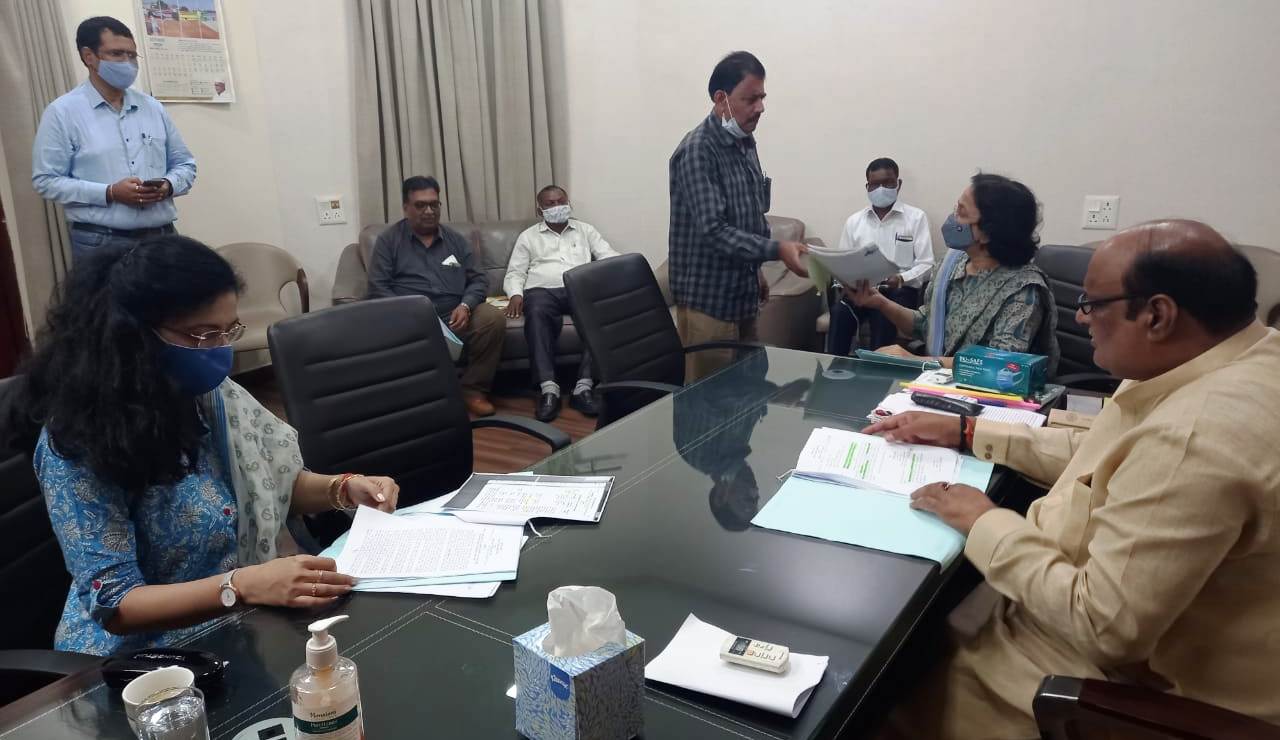 Raipur, 8 October 2021. The meeting of the inter-departmental committee under the chairmanship of State Revenue and Disaster Management Minister Jaisingh Agrawal was held here today. In the meeting, under the special rail project of Indian Railways, for Kharsia to Dharamjaygarh Gharghoda to Dongamauha (104 km) Baraud rail line, 0.268 hectares of government land located in village Faguram district Raigarh and other matters were discussed and fixed premium and land rent etc. The land allotment was proposed for Secretary Revenue and Disaster Management Ms. Rita Shandilya, Special Secretary Finance Smt. Sheetal Sashwat Verma, Deputy Secretary Housing and Environment C. Tirkey and members of the Inter-departmental Committee were present in the meeting.