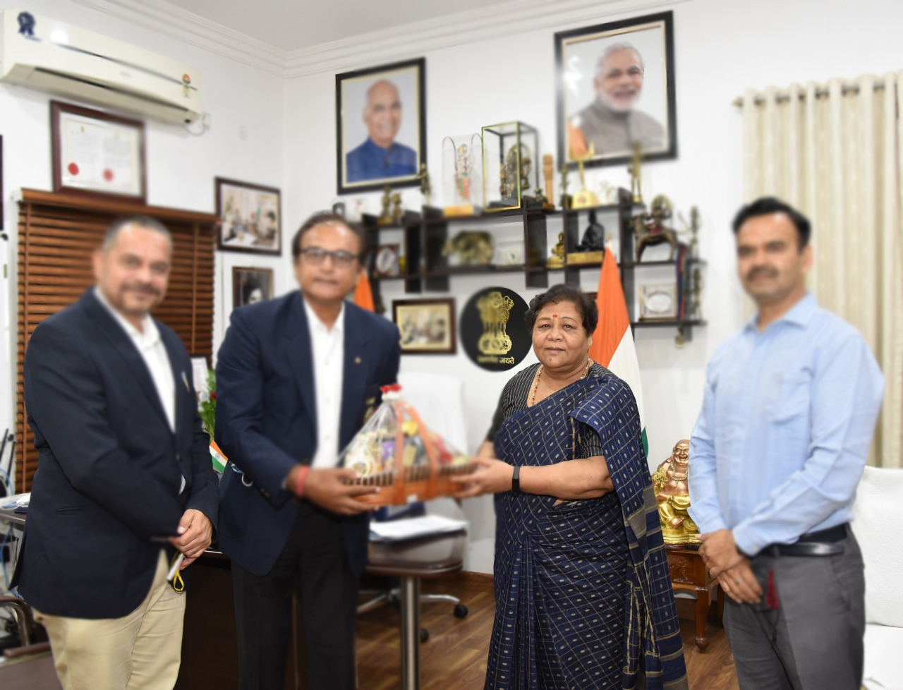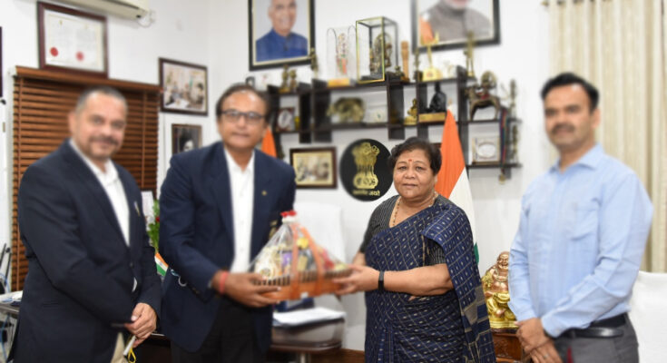Raipur, 17 November 2021. A delegation of Swami Radhe Krishna Academic Society, Raipur, under the leadership of former cricketer Mr. Rajesh Chauhan, met Governor Ms. Anusuiya Uikey at Raj Bhavan. The delegation informed that for the physical and mental development of children in Chhattisgarh, they want to start such an institution, in which they get training in military education, sports along with school education. Along with this, vocational training will also be given to those children, which will develop their skills. After getting education from here, children will be able to become self-reliant and they will not have to face the problem of finding a job.
