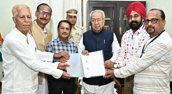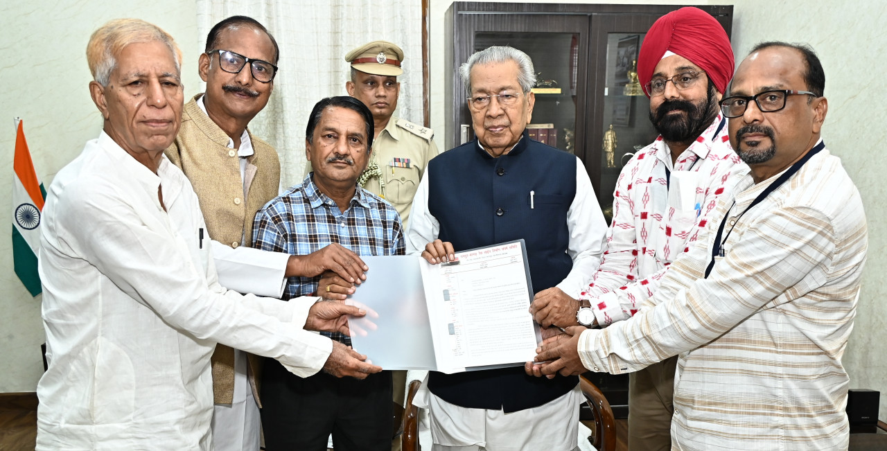 President of Chhattisgarh Arya Pratinidhi Sabha Dr. Ramkumar Patel and Acharya Rakesh Kumar met Governor Mr. Vishwabhushan Harichandan Raj Bhavan today. He presented an oil painting of Swami Dayanand Saraswati, the founder of Arya Samaj, to the governor.