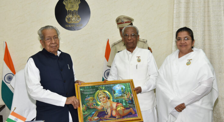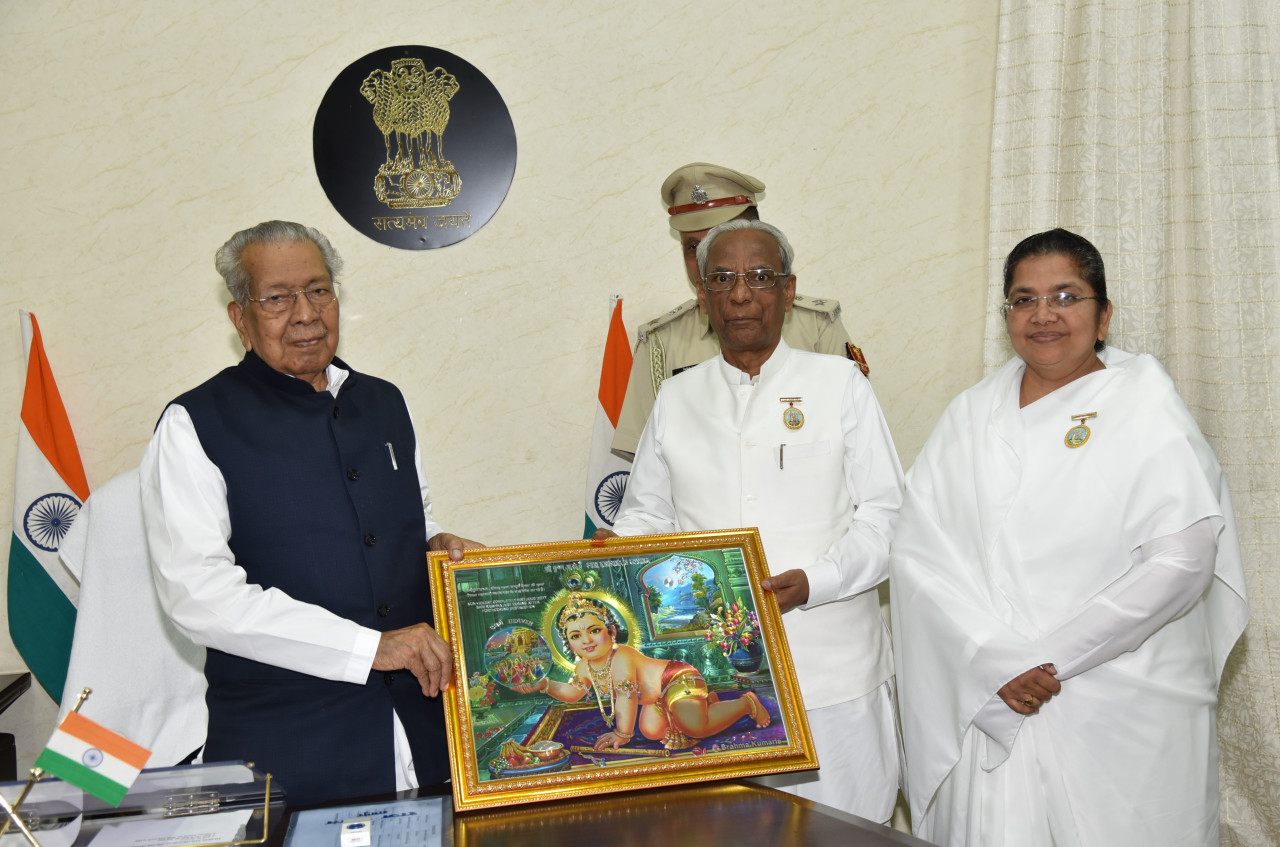 Governor Mr. Vishwabhushan Harichandan met courtesy Dr. Banarsi Lal Shah, Executive Secretary, Medical Wing of Prajapita Brahmakumari Ishwariya Vishwavidyalaya, Mount Abu at Raj Bhavan today. Bramhkumari Savita Behan, Director of Raipur Seva Kendra was also present with him. He informed the Governor about the activities being conducted by the organization under the drug-free India campaign.