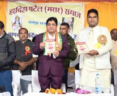 Minister Dr. Dahria attended the Maa Shakambhari Festival of Hardiha Patel (Marar) Samaj Raipur Raj in Arang. He released Samaj Darpan Patrika of the society and participated in the swearing-in ceremony of the executive committee of the society. He announced to sanction 10 lakh rupees for the construction of the courtyard of Marar Samaj Bhavan.