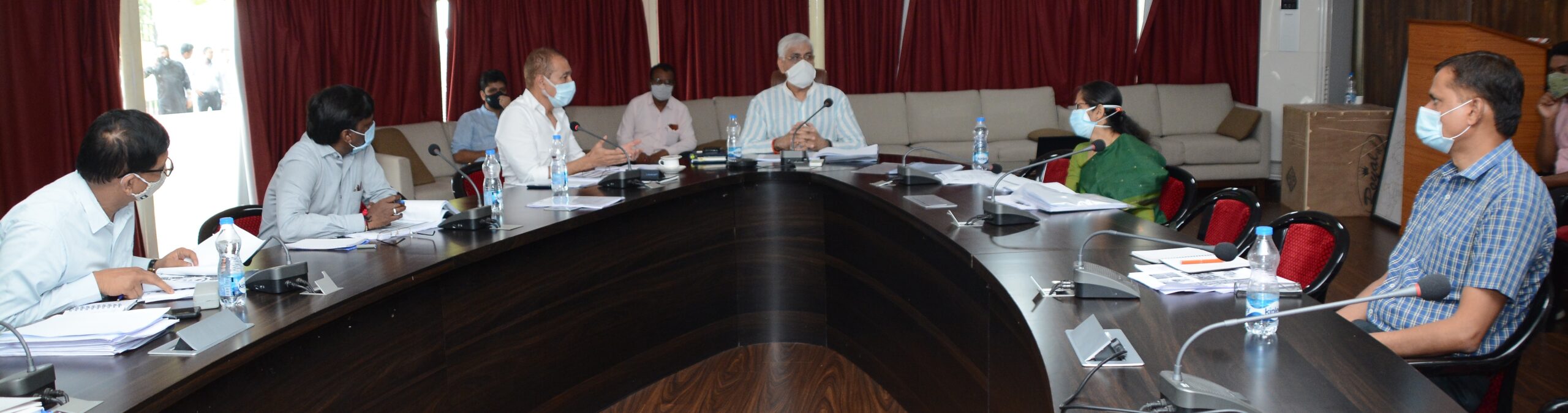 Raipur, 30 August 2021. Panchayat and Rural Development and Health Minister Shri T.S. Singhdeo reviewed in detail the progress of other departmental schemes including Pradhan Mantri Gramin Sadak Yojana, State Livelihood Mission, Swachh Bharat Mission, MGNREGA, 15th Finance Commission works under Panchayat and Rural Development Department at his residence office here today. Additional Chief Secretary, Panchayat and Rural Development Department Smt. Renu Ji Pillay and other senior officers were present in the meeting.