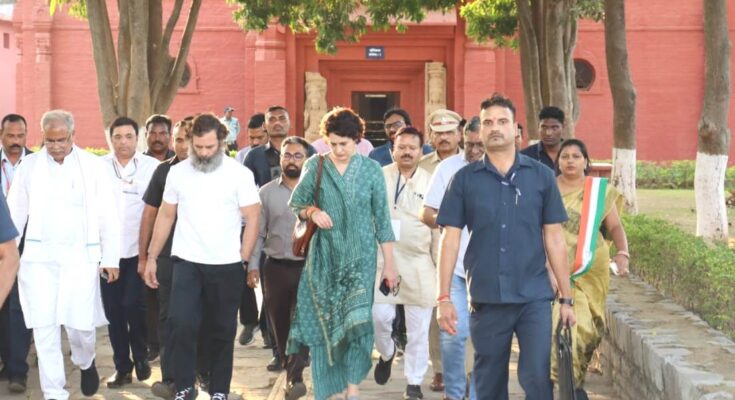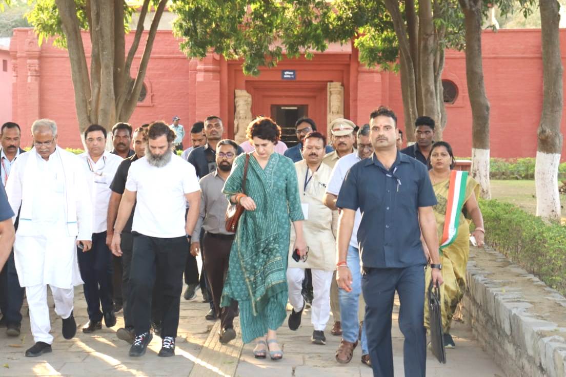 MPs Mr. Rahul Gandhi, Mrs. Priyanka Gandhi Vadra along with Chief Minister Mr. Bhupesh Baghel today visited Sirpur, a place of historical and archaeological importance in Mahasamund district. MP Mr. Rahul Gandhi and Mrs. Priyanka Gandhi Vadra visited the world famous Laxman Devalaya temple. He also visited Surang Tila and Tivardeo Bihar. During this, MP Mr. Rahul Gandhi also met the Patel family near Tiwar Dev, Bihar.