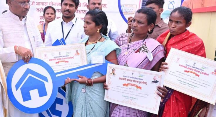 Chief Minister Shri Vishnu Dev Sai has handed over the keys of their houses to the beneficiaries under the Pradhan Mantri Awas Yojana Gramin of the district in the Chitrakote Mahotsav program. Now they will not need to live in kutcha houses. The families of Mrs. Juni Nag, husband Mr. Sukru and Mrs. Domini husband Mr. Somaru, residing in Gram Panchayat Babusemra under development block Jagdalpur, earlier lived in small kutcha houses. The housing was in a dilapidated condition and it was difficult to live there. The names of both these beneficiaries were included in the permanent waiting list of SECC 2011. They were given approval for housing under the Pradhan Mantri Awas Yojana Gramin. For the construction of the said house, the amount of Rs 1 lakh 30 thousand sanctioned from Pradhan Mantri Awas Yojana Gramin was directly transferred to his account through DBT in four installments, along with 95 days wage payment was also provided from MNREGA. At present, both the beneficiaries have completed the construction of the house and are living with their families in a permanent house.