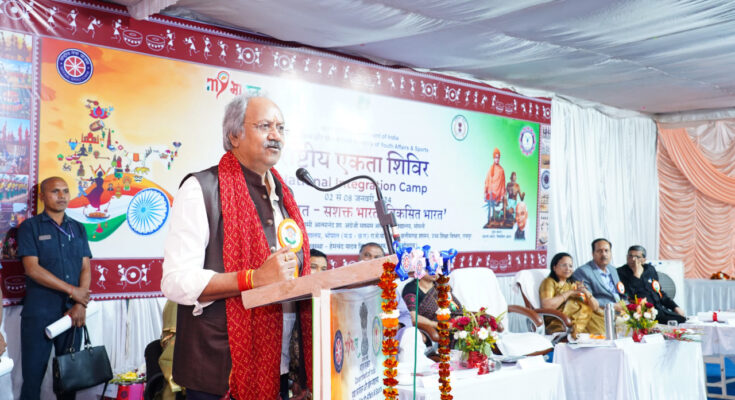 Minister of Higher Education, School Education, Parliamentary Affairs, Religious Trusts and Endowments, Tourism and Culture, Shri Brijmohan Aggarwal, during his stay in Rajnandgaon district on Sunday, organized a national program organized by the Ministry of Youth Affairs and Sports, Government of India at Swami Atmanand Government English Medium Model College, Somni Rajnandgaon. Participated in the closing ceremony of the unity camp. On this occasion, Minister Shri Brijmohan Aggarwal said that in this National Unity Camp, one gets the opportunity to understand and know each other closely, while on the other hand, national unity is promoted. He said that despite different languages, different guises, still one country. The day when all the countrymen will rise up and work in the spirit of regionalism, there will be true unity in the country and we cannot stop India from becoming the world leader.