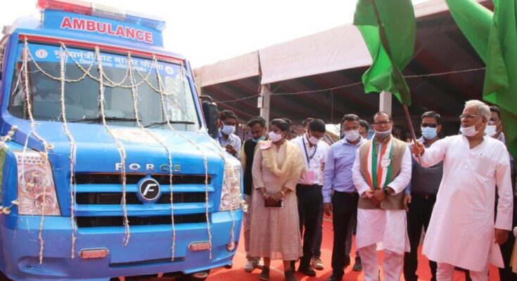 Raipur, 4 February 2021. Chhattisgarh Government is making consistent efforts to provide free health services to common people. With Chief Minister Haat-Bazaar Clinic Yojana, hospitals are now reaching out to the public. Through this scheme, free checkup and treatment facilities along with the medicines required are being made available even in the remotest villages and forest areas of the state. Chief Minister had flagged off eight new ambulances for Chief Minister Haat-Bazaar Clinic Scheme in Kanker on January 28. Two of these ambulances have been sent to Koyalibeda block and one each to the remaining blocks, for providing health services to people in Haat bazaars of Kanker district.