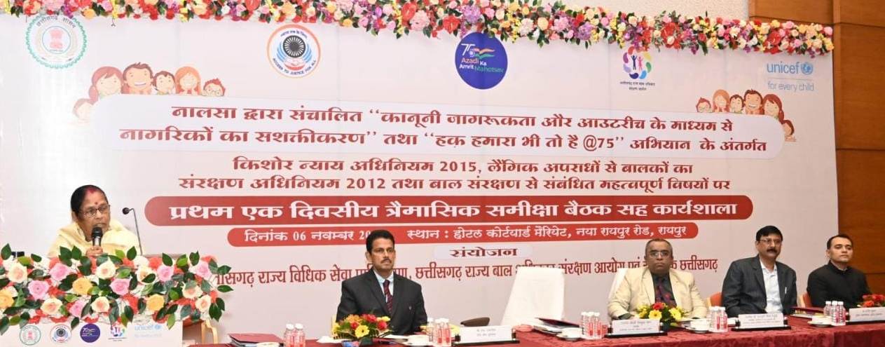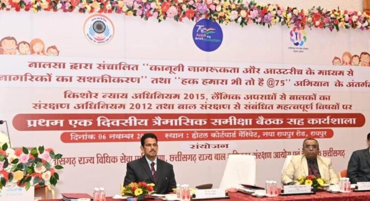For the first time, the Juvenile Justice Board of the districts, the chairman of the child welfare committees, the District Legal Services Authority and the District Child Protection Unit were brought on a single platform by the Chhattisgarh Child Rights Protection Commission, taking a new initiative for the protection of children’s interest by UNICEF and the Legal Services Authority. Gone. This will bring speed and clarity in the work done by the institutions. The first quarterly review meeting cum workshop was organized by the Child Protection Commission at Naya Raipur Road hotel today. On this occasion Judge of Chhattisgarh High Court and Executive Chairman of Chhattisgarh State Legal Services Authority Mr. Gautam Bhaduri, Chairman of Chhattisgarh State Child Protection Commission Mrs. Tejkunwar Netam, UNICEF State Chief Mr. Job Zakaria, IG Police Dr. Sanjeev Shukla and Women and Child Special Secretary, Development Department, Shri Poshan Chandrakar was also present.