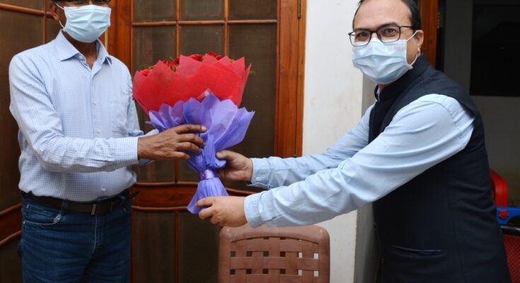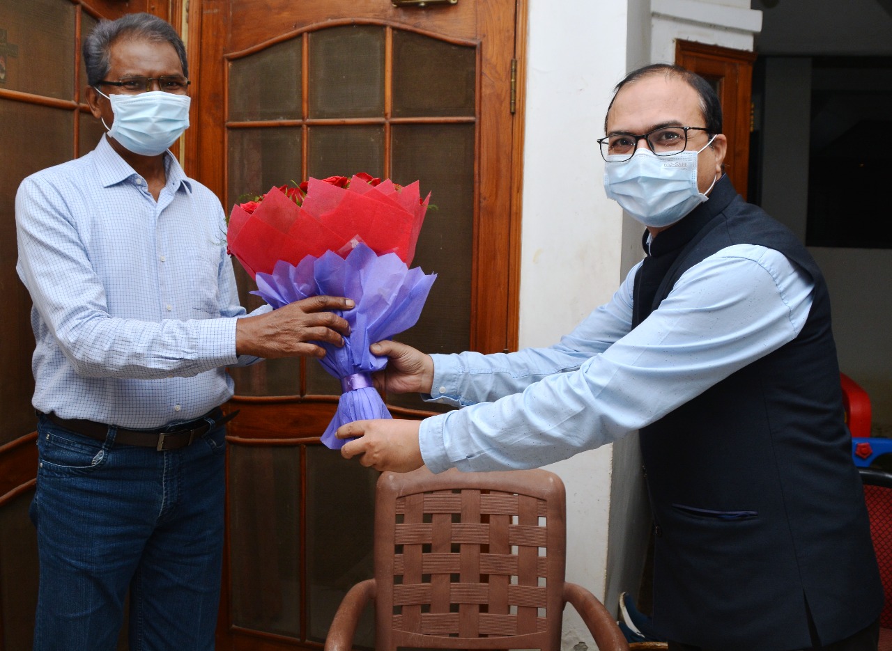 The newly appointed Chairman of the State Finance Commission, Mr. Sergius Minj, was handed over a copy of the notification to the Deputy Secretary of the Finance Department, Mr. Anand Mishra, and Under-Secretary Finance Mr. Sharad Parsai reached his residence this evening and greeted him with a bouquet.