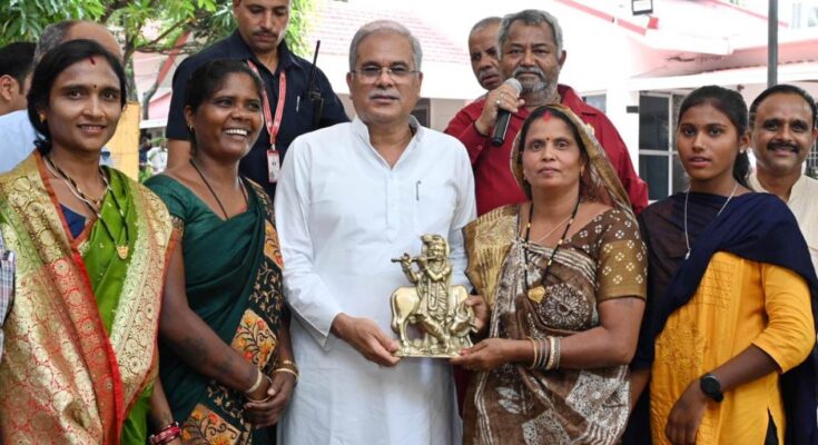 The Chief Minister said that the production of milk has increased by 50 thousand liters due to the encouragement being given to the dairy industry in the state. He urged the Sarva Yadav Samaj to strengthen the dairy sector by taking maximum advantage of the schemes of the state government. On this occasion, the delegation of the society under the leadership of State President of Sarv Yadav Samaj Mr. Ramesh Yadu felicitated Chief Minister Mr. Baghel for providing land and financial assistance to the Yadav community for social buildings in different districts of the state by wearing a silver crown and gajmala and presenting Lord Krishna’s statue and bullock cart symbol.