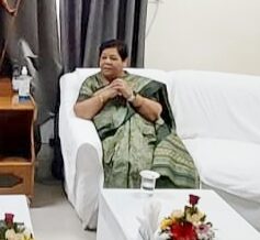 Raipur, 12 March 2022. Governor Ms. Anusuiya Uikey reached Bilaspur today on her one-day stay. On reaching Bilaspur, the Collector and local public representatives gave a warm welcome to the Governor Ms. Uike at the SECL rest house. During this, Inspector General of Police Bilaspur Range Shri Ratanlal Dangi and Collector Shri Saransh Mitter met the Governor. Governor Ms. Uike inquired about the development works and activities of the district from the officials. The Governor instructed the officers to listen to the problems of the common people and resolve them on priority.