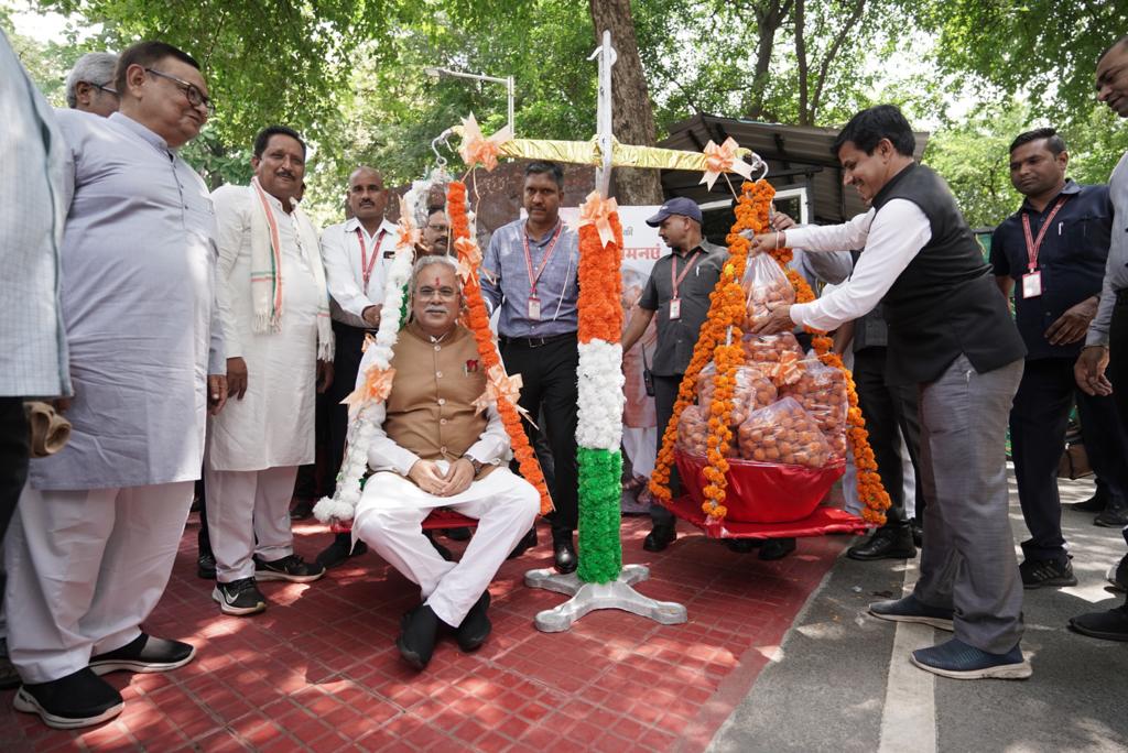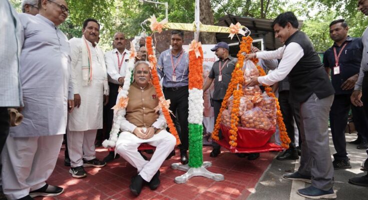 Chhattisgarh / Raipur / StatesRaipur: On the occasion of his birthday, well wishers congratulated and wished their beloved Chief Minister Mr. Bhupesh Baghel by weighing them with laddoos. August 23, 2022 - by Varsha Dwivedi Spread the loveRaipur, 23 August 2022 On the occasion of his birthday, well wishers congratulated and wished their beloved Chief Minister Mr. Bhupesh Baghel by weighing them with laddus.