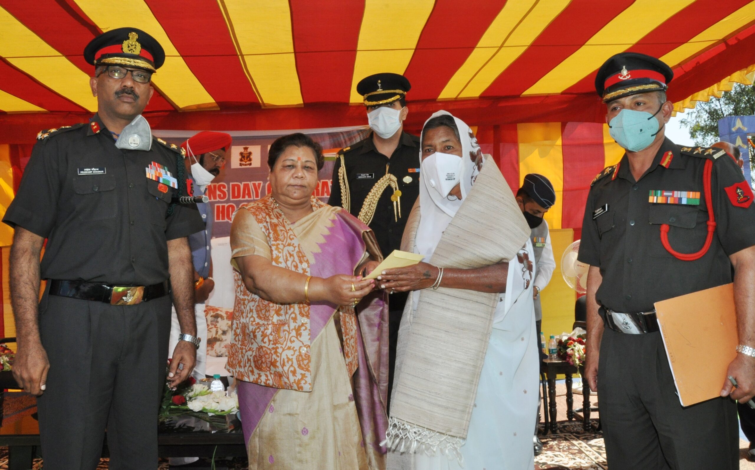 Raipur, 14 January 2021. Governor Ms. Anusuiya Uike attended the Veteran Day program organized by Chhattisgarh and Odisha sub-region in Nava Raipur today and honored the heroic women and heroic mothers. He saluted the martyred soldiers by thanking the ex-servicemen and their families for their contribution towards the country.