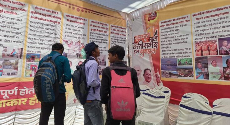 On completion of one year of good governance under the leadership of Chief Minister Shri Vishnu Dev Sai, the Public Relations Department has organized photo exhibitions in various districts of the state to inform the general public about the public welfare schemes of the government. Information about Pradhan Mantri Janjati Adivasi Nyay Abhiyan, Pradhan Mantri Awas Yojana, Mahtari Vandan Yojana, Krishak Unnati Yojana and other beneficiary-oriented schemes was given to the people through photo exhibitions. Students also got important information through the exhibition.