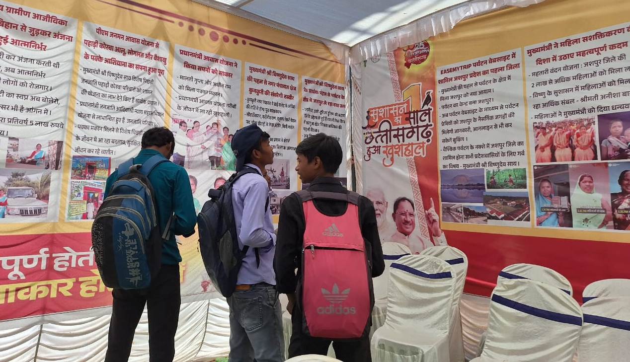 Information about achievements is also being given through LED screens at the exhibition site. Apart from this, books, brochures, booklets are also being distributed. The tribal families who have benefited from the Pradhan Mantri Janjati Adivasi Nyay Maha Abhiyan Yojana are also shown at the exhibition. It also displays how the Pradhan Mantri Awas Yojana is providing permanent homes to the people. Along with this, with the efforts of CM Vishnudev Sai, a 220-bed hospital, 400 kV electrical sub-station, Jashpur taking a new look in the field of tourism, adventure, eco-tourism, the development of Mayli Nature Camp which has been done with the aim of promoting tourism have also been displayed.