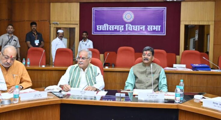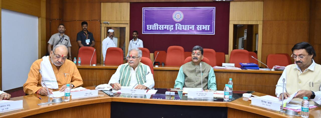 A meeting of the Business Advisory Committee was held in the committee room of the Vidhan Sabha here today under the chairmanship of Speaker Dr. Charandas Mahant. Members of the committee including Chief Minister Bhupesh Baghel, Leader of Opposition Shri Dharamlal Kaushik, Parliamentary Affairs Minister Shri Ravindra Choubey were present in the meeting.