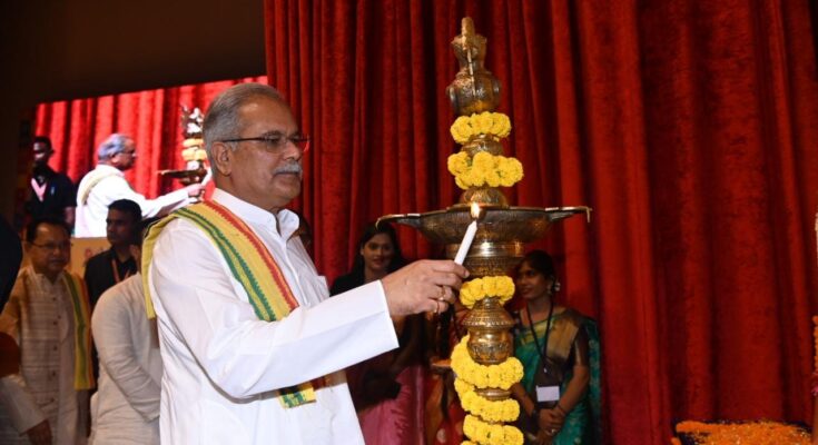Chief Minister Bhupesh Baghel attended the program of World Tribal Day organized by Sarva Adivasi Samaj at Deendayal Auditorium here today. Scheduled Castes and Tribes Development Minister Dr. Premsai Singh Tekam, Parliamentary Secretary Mr. Vikas Upadhyay, Chairman of Home Construction Board Mr. Kuldeep Juneja, Chairman of Scheduled Tribes Commission Mr. Bhanupratap Singh, MLAs Mr. Satyanarayan Sharma and Mr. Brijmohan Agarwal, all tribals. Society officials and a large number of social friends were present.