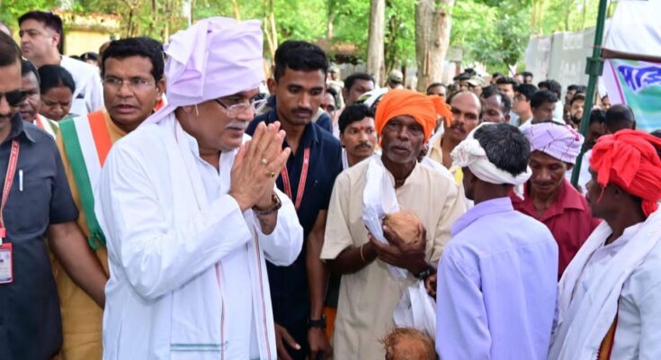 Raipur 27 May 2022. The Chief Minister reached the Devgudi site, the Aastha Center of Gram Panchayat Rajagaon, where he responsibly resided in the old temple located in the Devgudi complex and in the twelve picoris of the fourteenth Mata Gudi, the responsible Mata, Langur Mata, Mavli Mata, Banjarin Mata, Bamhani Mata, Tarkin Mata, Bhima Dokra, By offering darshan and worship of Surleen Dandha deity, he wished for the happiness and prosperity of the people of the state.