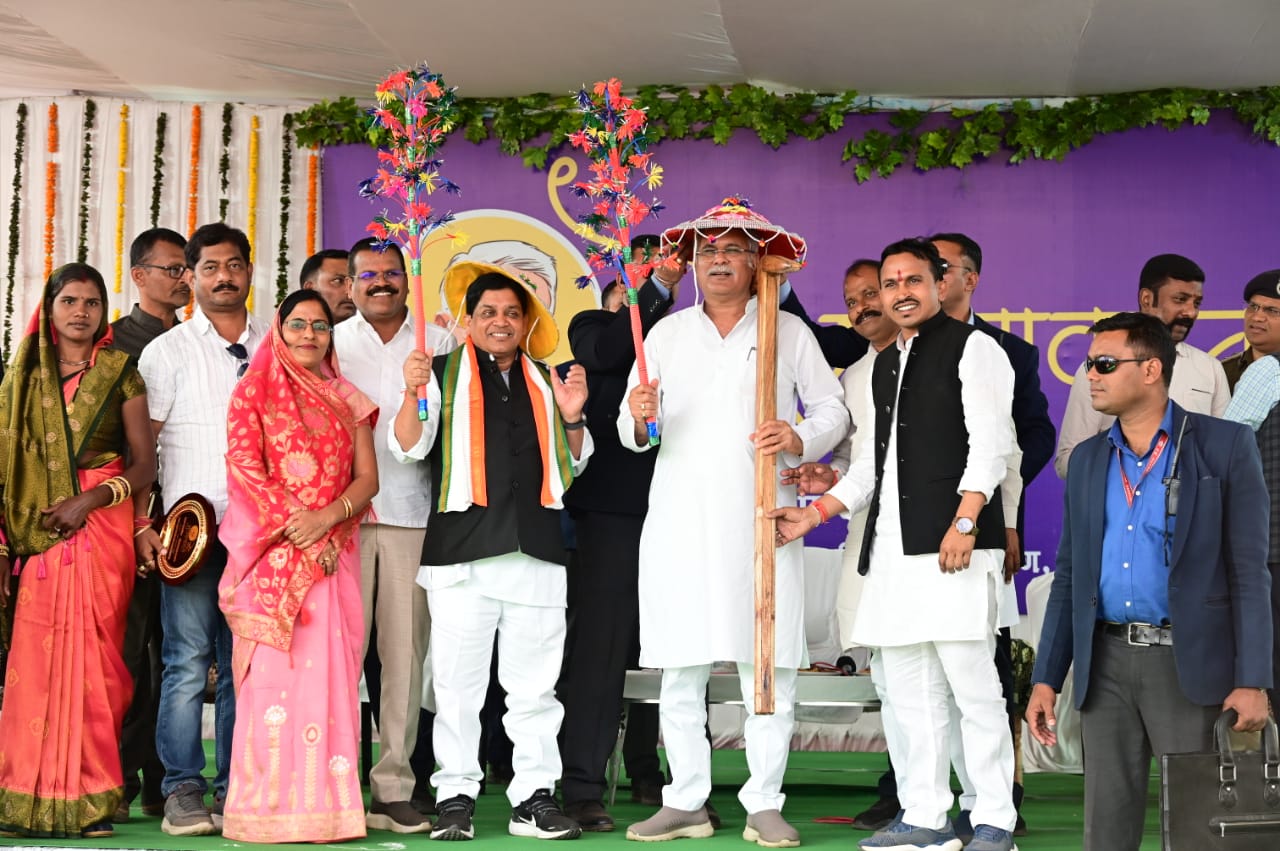Meeting-meeting Local people’s representatives reached Samoda to meet Chief Minister Mr. Bhupesh Baghel. He expressed heartfelt welcome and gratitude to Chief Minister Mr. Baghel by giving him a solution, traditional cap and memento.