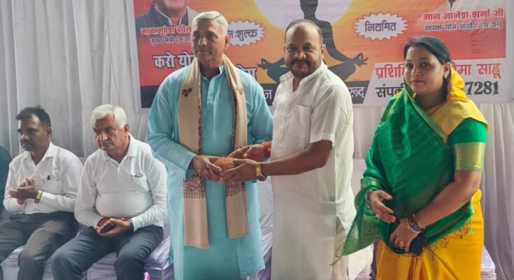 Chhattisgarh Yoga Commission is starting yoga practice in Municipal Corporation area. In this series, Chairman of Chhattisgarh Yoga Commission Mr. Gyanesh Sharma inaugurated the 33rd free regular yoga practice center in Kurud. Yoga practice center will be operated by yoga instructor Bhema Sahu daily from 6:00 am to 7:30 am in the old Krishi Upaj Mandi premises.