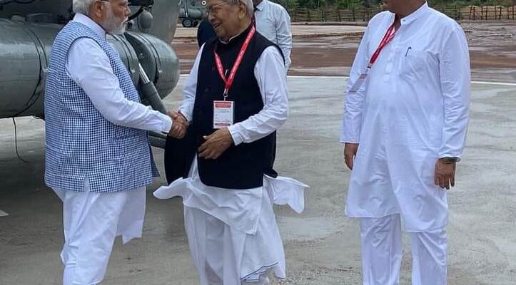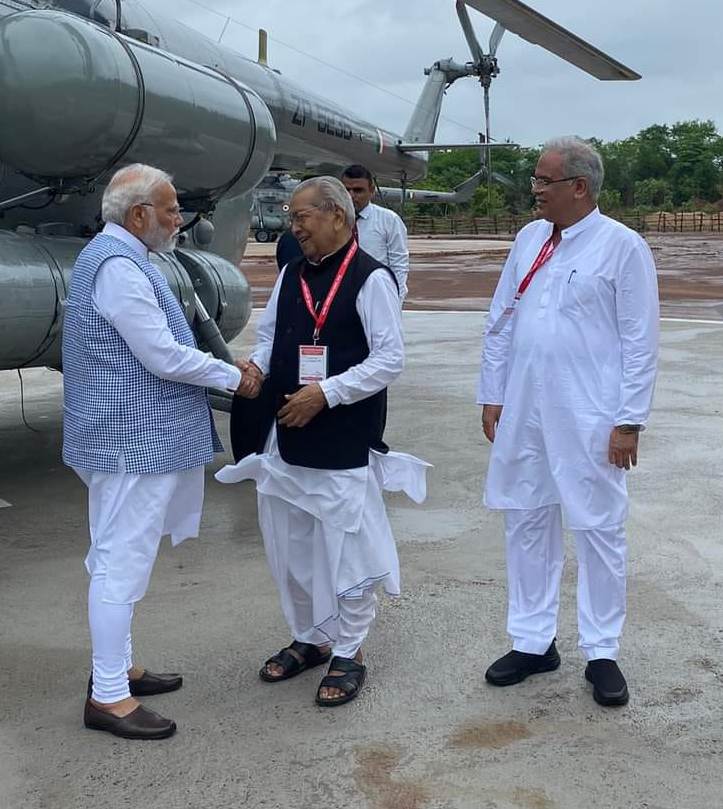 Governor Shri Vishwabhushan Harichandan extended a warm welcome to Prime Minister Shri Narendra Modi on his arrival in Raipur at the helipad located at the Science College. Chief Minister Mr. Bhupesh Baghel and Union Ministers were present on this occasion.