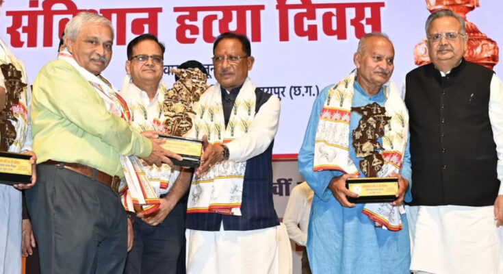 Chief Minister Shri Vishnu Dev Sai today attended the Constitution Hatya Diwas program organized on the occasion of the 50th anniversary of the Emergency at Pandit Deendayal Upadhyay Auditorium in the capital Raipur.