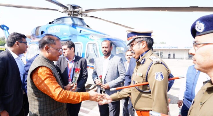During this time, Kondagaon MLA Ms. Lata Usendi, District Panchayat President Mrs. Vedwati Kashyap, former MP Mr. Dinesh Kashyap, former minister Mr. Mahesh Gagda, former MLA Mr. Santosh Bafna, Mr. Baiduram Kashyap, Mr. Subhau Kashyap, Mr. Rajaram Todem were present at the airport. Bastar Divisional Commissioner Mr. Shyam Dhavde, IG Mr. Sundarraj P., Collector Mr. Vijay Dayaram K., SSP Mr. Jitendra Meena, Chief Forest Conservator Mr. Gupta and Dugga, CEO District Panchayat Mr. Prakash Sarve, and other distinguished public representatives welcomed him.