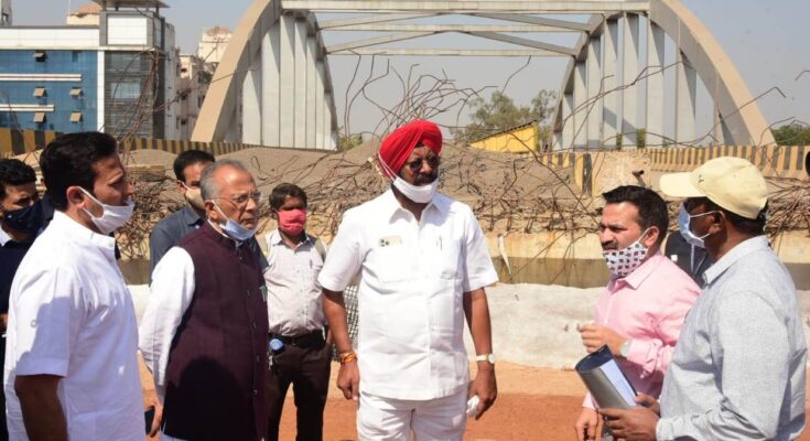 The Minister of Public Works visited the Over Bridge Bridge Telibandha and instructed to complete the traffic by the first week of March 03 and the first week of May 2, as well as to start the traffic by 15 May 2021 and pay special attention to caution and safety. lamps. He instructed to submit an assessment report of quality of work under construction at Fafadih every 15 days. During the inspection, it was told that this bridge was given to four agencies – NIT, Public Works, CGIRDC. The technical team of the company and the technical team of the construction agency are seriously paying attention to the quality.