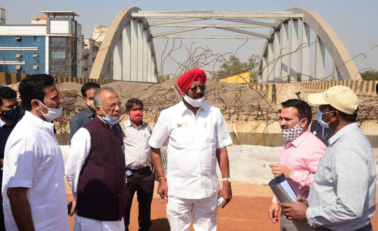 Minister Shri Sahu instructed to complete the security within the under bridge under construction under Telghani Naka, to conduct regular lab tests of quality and speed up the work in time. He instructed the Chief Engineer to submit the progress report of the work every 15 days and complete the work by June 2021. He visited Lalpur Over Bridge and instructed to submit details related to work order, work start, increase in deadline and sublet and follow the tender document on the side. He also directed to issue a warning letter to the concerned construction agency, temporarily halting the work due to non-standard construction. During the inspection, Parliamentary Secretary Mr. Vikas Upadhyay, Chairman of the State Housing Board, Mr. Kuldeep Juneja, Chief Engineer Mr. V.P. K.