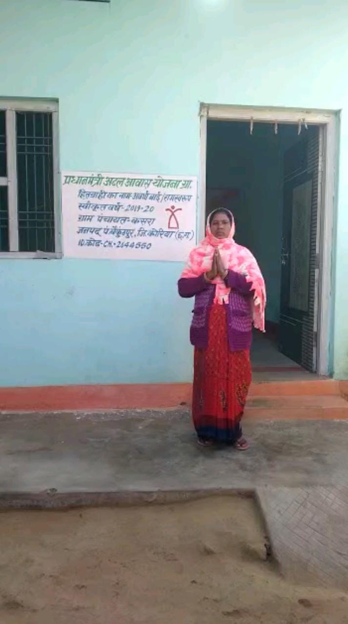 Awadhi Bai, a resident of Kasra village of Baikunthpur development block of the district, earlier used to live with her family in a kutcha house, fearing water seepage before the rains, sunlight coming from the broken tile roof before the summer and extreme cold in winter. Happiness came in the life of forced Awadhi Bai when she came to know about Pradhan Mantri Awas Yojana.