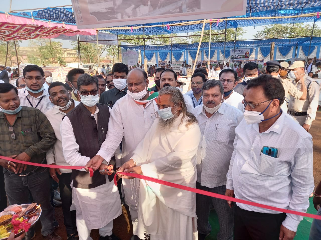 Raipur, 06 March 2021. Livestock and Poultry Farming Exhibition was launched at the Nandeli Bhatha Maidan of Sakti in Janjgir-Champa district under the chief hospitality of Dr. Charan Das Mahant, Speaker of Chhattisgarh Legislative Assembly. On this occasion, the State Revenue Minister Shri Jai Singh Aggarwal and the Chairman of the State Cow Service Commission, Mahant Dr. Ram Sundardas and other public representatives were present.