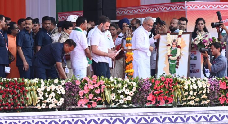 Chhattisgarh / NATIONAL / Politics / RaipurRaipur: Rajiv Yuva Mitan Sammelan: Program started with garlanding in the photograph of Chhattisgarh Mahtari and the tune of state song Arpa Parry. September 2, 2023 - by Silky Dwivedi Spread the loveRaipur, 02 September 2023 Rajeev Yuva Mitan Sammelan: Program started with garlanding Chhattisgarh Mahtari’s photograph and the edge of Rajgeet Arpa Pari.