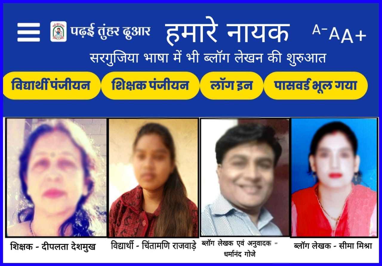 Raipur, 13 January 2021. Makar Sakranti, under the Padhai Tunhar Duar program, is being published in the popular language of Sarguja Division in our Nayak column from January 14, in which Mrs. Deeplata Deshmukh, a teacher from Surguja district, Sarguja district, and Kumari Chintamani, an orthopedically challenged student from Surajpur district, are being published. Rajwade’s blog will be uploaded. Teacher’s blog, blog writer Mr. Dharmanand Goje of Surajpur district and student’s blog, blog writer Mrs. Seema Mishra of Balodabazar district have written. Blog writer Mr. Dharmanand Goje has translated both blogs into Sargujia language. Prior to this, blog writing has also been done in Sanskrit, Chhattisgarhi language and Kudukh and Gondi regional languages along with Hindi and English language. Every day new efforts are being made by the team of state blog writer of our Nayak column, showing the culture and artistry of Chhattisgarh,
