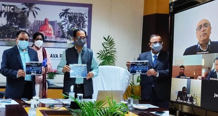 Raipur, 19 January 2022. National Informatics Center Chhattisgarh’s Annual Table Calendar (Infograph) 2022 and Monthly Newsletter were released by Joint Secretary General Administration and Public Works Shri Sanjay Agarwal in a brief program organized at Mahanadi Mantralaya Bhawan. At the beginning of the program, State Informatics Officer Dr. Ashok Kumar Hota gave information about the achievements of NIC in the year 2021 through power point presentation.