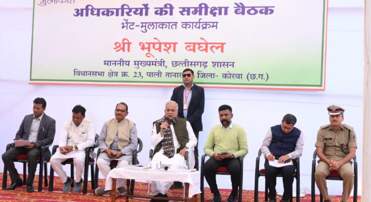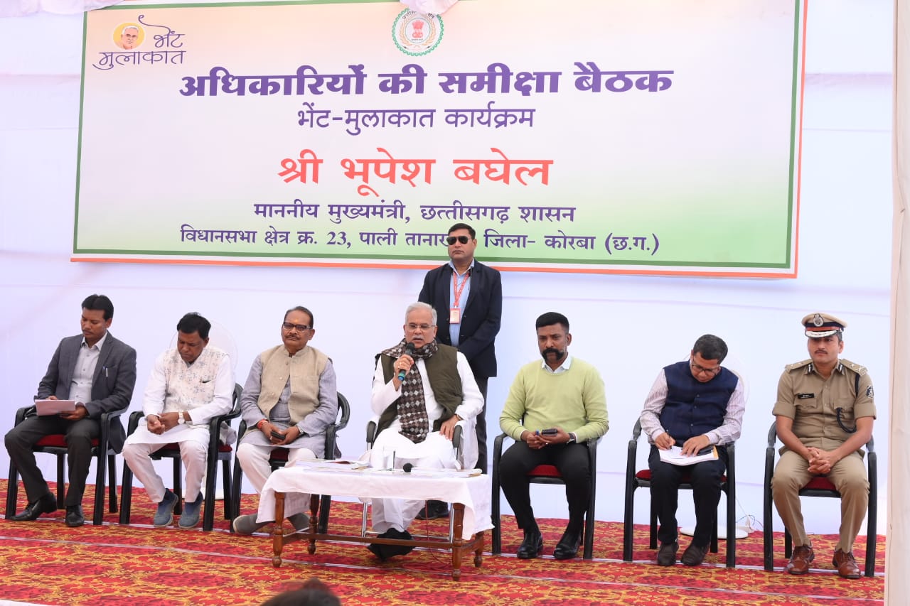 Chief Minister Mr. Bhupesh Baghel is taking a review meeting of officials at Pali Tanakhar Vidhansabha (Rest House) in Korba district under the meeting.