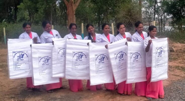 In Mahatma Gandhi Rural Industrial Park Kunwarpur of development block Lakhanpur of Surguja district in Chhattisgarh, women of Pragati Self Help Group are running the enterprise of manufacturing sacks for packaging vermi-compost. At present, the work of making bags is being done by this group on daily basis. About 11,000 gunny bags have been manufactured by the group within a month of the beginning of gunny bag manufacturing, out of which, while supplying 6,000 gunny bags, the gunny bags have been sold in 57 Gauthans of Lakhanpur development block for vermicompost packaging. So far, income of up to Rs 94 thousand has been received by women entrepreneurs in a month itself. The supply of gunny bags continues from here.