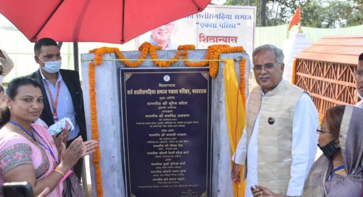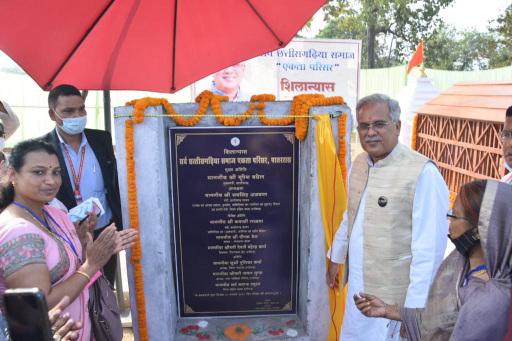 Raipur, 31 January 2021. Chief Minister Bhupesh Baghel laid the foundation stone of Sarva Chhattisgarhiya Samaj Ekta Complex at Village Pataras on the occasion of his visit to Dantewada today. On this occasion, the Chief Minister said that this campus will become an example of equality and unity of all religions in accordance with the religious harmony of Chhattisgarh.