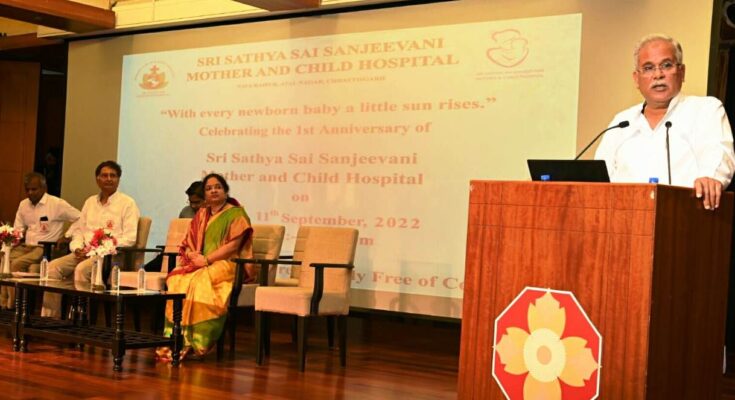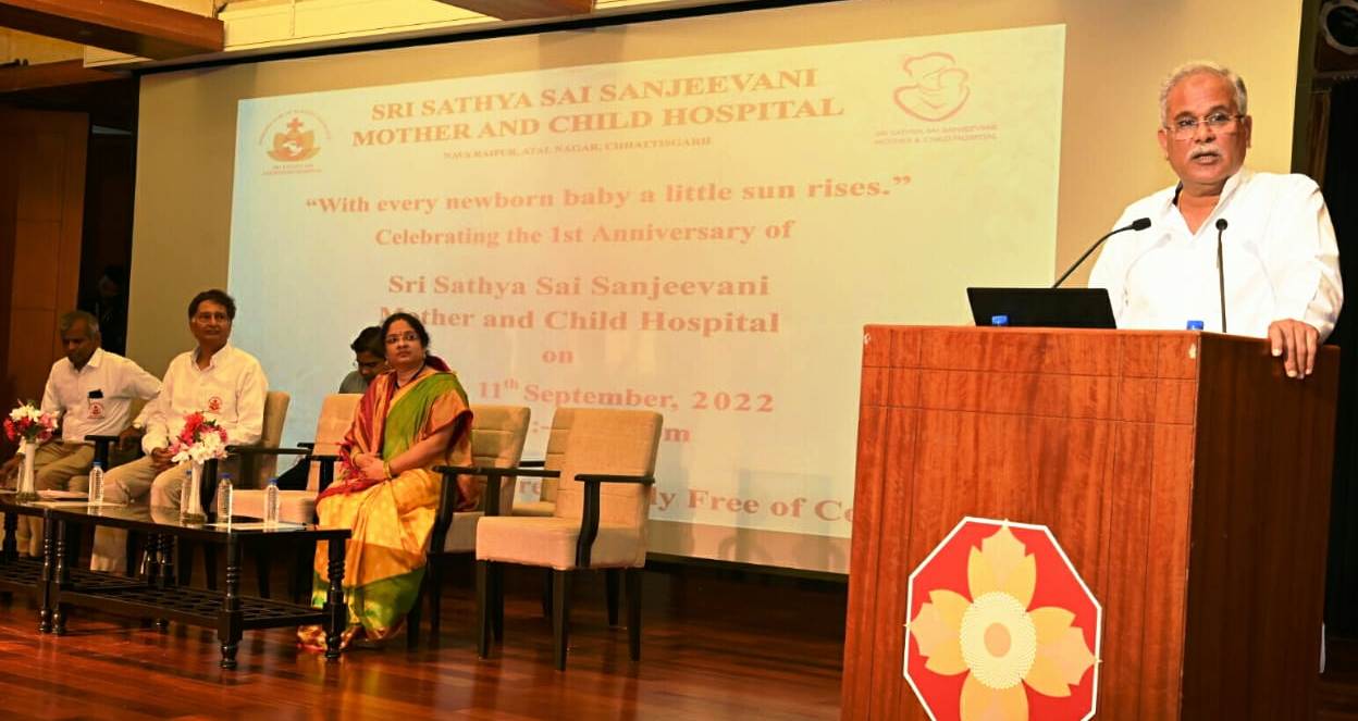Chief Minister Shri Bhupesh Baghel today attended the first anniversary organized of the free Shri Sathya Sai Sanjeevani Maa and Bal Hospital operated at Nava Raipur Atal Nagar and congratulated and congratulated all the management staff of the hospital. On this occasion, the Chief Minister described Sri Sathya Sai Sanjeevani Hospital as unmatched in the service of humanity. He said that its excellent service has been recognized in the country and the world and a large number of people are continuously coming here to take advantage of the free treatment and service of the hospital.