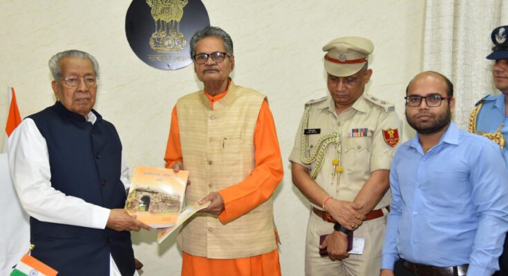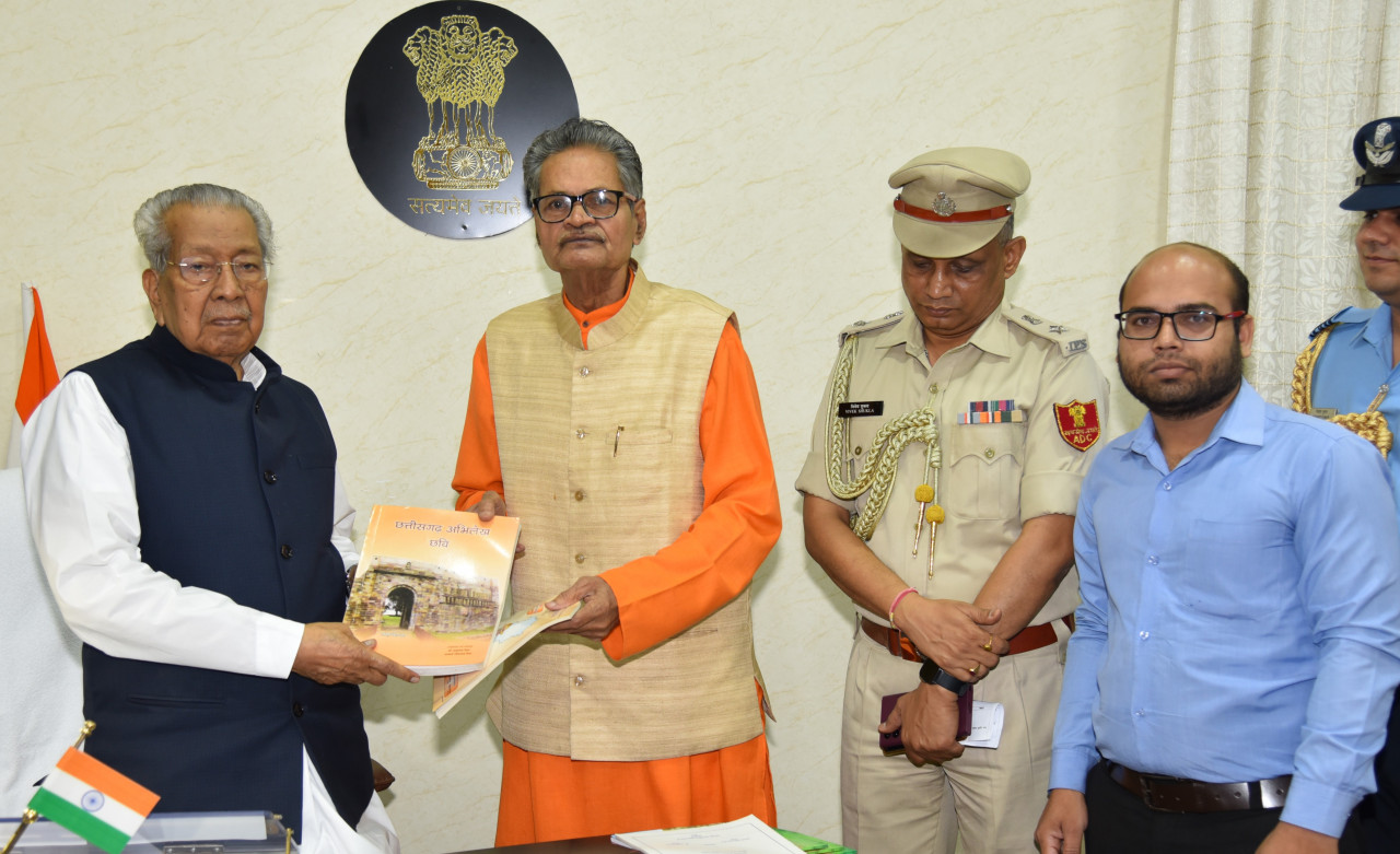 Acharya Shri Ramendranath Mishra, senior historian and secretary of Mahakoshal Mahakosha History Council, paid a courtesy visit to Governor Shri Vishwabhushan Harichandan at Raj Bhavan today. He presented the first copy of Mahakoshal Itihaas Shodh Patrika and self-written books based on the history of Chhattisgarh to the Governor. Council’s Joint Secretary Shubham Divya was also present with him.