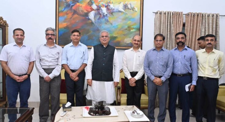On the occasion of his birthday, Chief Minister Mr. Bhupesh Baghel was congratulated and wished by senior officers of the government at the Chief Minister’s residence today. On this occasion, Chief Secretary Mr. Amitabh Jain, Director General of Police Mr. Ashok Juneja, OSD PHQ Mr. D.M. Awasthi, PCCF Mr. Srinivas Rao, Deputy Chairman of Planning Commission Mr. Ajay Singh, Chairman of Public Service Commission Mr. Taman Singh Sonwani, Additional Chief Secretary to Chief Minister Mr. Subrata Sahu, Secretary Mr. Siddharth Komal Singh Pardeshi, Mr. Ankit Anand, Dr. S. Bharatidasan, Food Secretary Mr. Topeshwar Verma, Commissioner of Public Relations and Transport Department Mr. Dipanshu Kabra, Inspector General of Police Raipur Rural Mr. Ajay Yadav, Inspector General of Police Mr. Arif Sheikh, Inspector General of Police Raipur Mr. Ratan Lal Dangi, Commissioner Tribal Development Department Mrs. Shammi Abidi, Raipur Division Commissioner Dr. Sanjay Alang Director Administration Academy Mr. TC Mahawar, Director Public Relations Mr. Saumil Ranjan Choubey,