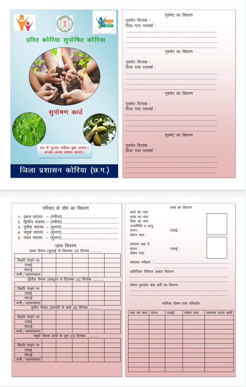 The Koriya district of Chhattisgarh has become the first district in the state and possibly the country which has taken the initiative to use plants as a tool to remove malnutrition among children. Under this innovation, the names of munge and papaya plants being planted will be recorded in the nutrition card of malnourished children, and the nutritional data of these plants will also be recorded at regular intervals along with the growth of the child