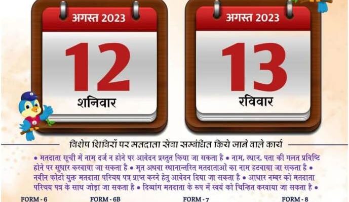 With the initial publication of the voter list on August 2, the work of its special summary revision has started. On the qualifying date of October 1, 2023, the process of getting Form-6 for adding new names to the voter list has been started. Form-7 for deletion of name and Form-8 for any kind of modification or transfer have also been started. These applications will be taken till August 31. As per the instructions of the Election Commission of India, special camps are being organized for this in all 24 thousand 109 polling stations of the state on August 12 and August 13 and August 19 and August 20.