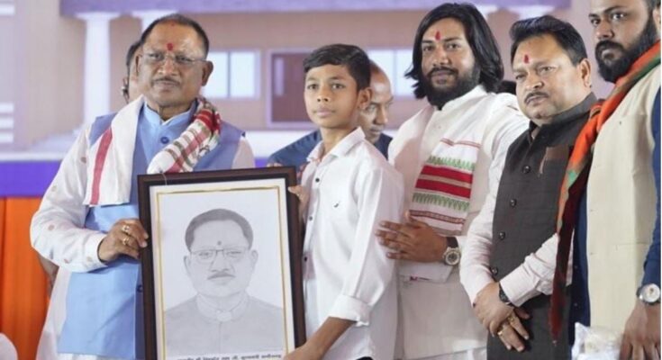 During the inauguration of the ashram hostel in Arang, a ninth class student Harsh Gilhare presented a sketch portrait made by his own hands to Chief Minister Shri Sai. On receiving Harsh’s gift, the Chief Minister blessed him and advised him to study diligently. The Chief Minister told Harsh that he has a unique skill of making an exact picture (sketch) of someone with just a pencil and he should practice a lot to improve it. Chief Minister Shri Sai said that perfection comes with practice, its nuances are known. By practicing continuously, he can become a good sketchmaker and bring fame to himself and his state in the counntry and the world. Harsh Gilhare is a ninth class student of Kendriya Vidyalaya No. 2 located in DD Nagar, Raipur.