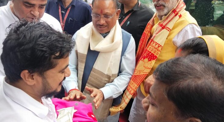 When Chief Minister Shri Vishnu Dev Sai reached Maharani Hospital, at the same time Monika Tripathi of Kondagaon was blessed with a daughter. When the Chief Minister came to know about this, he went to bless the daughter. The Chief Minister said that this is a very auspicious moment. I have seen the daughter. The Chief Minister took the daughter in his hands and caressed her. While blessing her, he presented her with a sum of five hundred rupees. He also congratulated the daughter’s father Pratyush Tripathi. He said that Laxmi has come to your house, many congratulations to you. Pratyush Tripathi said that the daughter has received the blessings of the Chief Minister, this is the biggest treasure for his daughter.