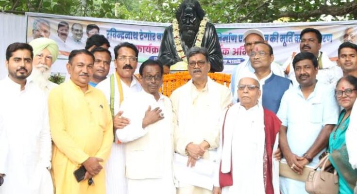Assembly Speaker Dr. Charandas Mahant unveiled the statue of Gurudev Rabindranath Tagore and laid the foundation stone of Tagore Vatika and Museum at Gorela-Pendra-Marwahi district hospital complex today on the occasion of 162nd birth anniversary of Gurudev Rabindranath Tagore. He inaugurated the newly constructed Hummer Lab on the occasion. On this occasion, in the series of Bisahu Das Mahant Ji’s Birth Centenary Year Celebrations, courtesy of the Indian Cultural Fund, a wonderful presentation of “Rabindra Sangeet” was given by linguist and musicologist Dr. Chittaranjan Kar on the birth anniversary of poet Gurudev Rabindranath Tagore.