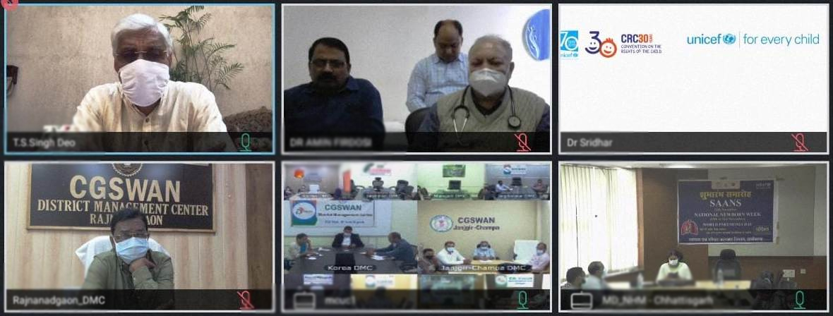 Raipur. 12 November 2021. Health Minister Shri T.S. Singhdeo today launched the ‘ Saans ‘ campaign ( Social Awareness and Action to Neutralize Pneumonia Successfully) in the state on World Pneumonia Day . Kovid -19 epidemic keeping from November 12 to February 28, 2022 in the ‘ breath ‘ is being driven campaign. Shri Singhdeo also launched the National Newborn Baby Week in a program organized through video conference. “Safety, Quality and Nurturing Care – Birth Right of Every Newborn” from November 15 to November 21, 2021 This week will be celebrated. Neonatal survival and development with the theme ( Growth & Development)National Newborn Children’s Week is being organized to create public awareness about the need and to ensure the commitment of newborn care at the institutional and community level. Director of National Health Mission Dr. Priyanka Shukla and officials of Health Department also participated in the virtual launch program.