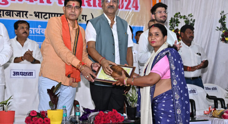 Shikshadoot Award Ceremony-2024 was organized at Balodabazar District Headquarters on Wednesday under the Chief Minister Shiksha Gaurav Alankaran Yojana. In this ceremony, Revenue Minister Shri Tankaram Verma and Raipur MP Shri Brijmohan Aggarwal honored 14 teachers of the district who did excellent work with the Shikshadoot Award. Along with this, the principals of 5 schools who achieved 100% result in High School Board Examination 2024, 10 cluster coordinators and 4 teachers were honored for innovative work.