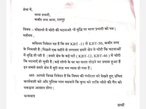 In the last 2 days, incidents of theft took place in house number KBT-12, 46 of Kabir Nagar. Along with taking the incidents of theft seriously, the local people also demanded to increase police patrolling, so that the incidents of theft can be stopped. Along with the assurance of taking action, he also received an acknowledgment from the police station and within a few hours again a theft took place in house number KBT-27, an easy target for thieves in Kabir Nagar.
