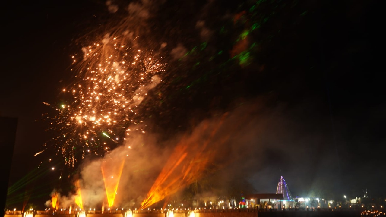 Mother Kaushalya’s maternal uncle and Lord Rama’s maternal grandmother Chandkhuri Dham were illuminated with 31 thousand diyas on the eve of Deepawali and Roop Chaudas today. Under the leadership of Chief Minister Bhupesh Baghel, Mata Kaushalya Mata Temple has been developed as a tourist destination from the identified sites of Ram Van Gaman Circuit. Today, members of Rajiv Yuva Mitan Club from many districts including Raipur had reached here for lamp donation. Before donating the lamp, the members of Rajiv Yuva Mitan Club first conducted a cleanliness campaign in the temple premises at Mata Kaushalya Dham Chandkhuri. Then decorated the premises with Rangoli and flowers. On the other hand, Mata Kaushalya temple courtyard was illuminated with 31 thousand diyas in the evening. ‘Jai Siya Ram’ was carved from the decoration of diyas. After donating the lamp, the sky of Chandkhuri was illuminated by fireworks with colorful firecrackers. During this, MLA Shri Devendra Yadav was specially present.